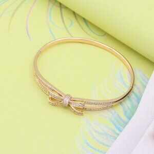 Bring a playful elegance to your look with this rose gold bangle featuring a crystal-studded bow design that's both sweet and sophisticated.