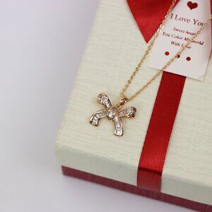 "Rose Gold Bow Pendant Necklace with Sparkling Crystal Accents , XPNL0163