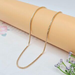 Modern and elegant rose gold necklace made from gold-plated high-quality brass. Features a classic box chain design with a glossy finish for a clean, stylish appearance.