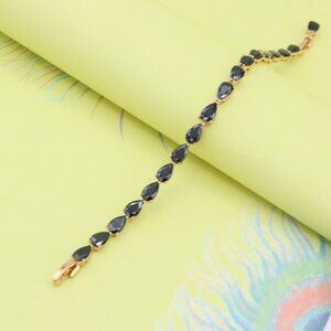 "Rose Gold Bracelet with Black Teardrop Stones – Bold & Elegant, XPBL0814