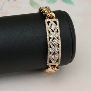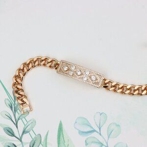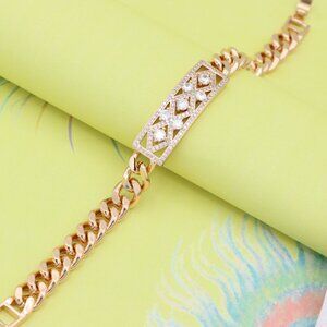 "Rose Gold Bracelet with Geometric CZ Panel and Bold Chain, XPBL0816