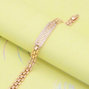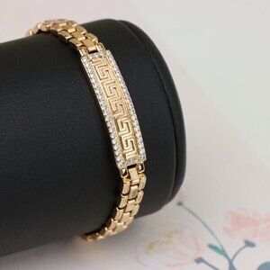 "Rose Gold Bracelet with Greek Key Design and Crystal Border, XPBL0950