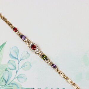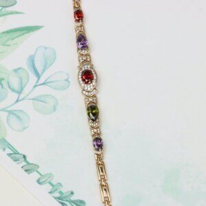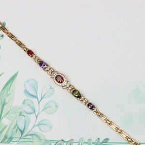 "Rose Gold Bracelet with Multicolor Stones & Diamond Halo Accents, XPBL0670