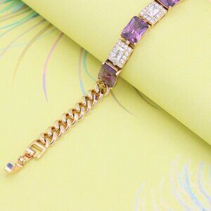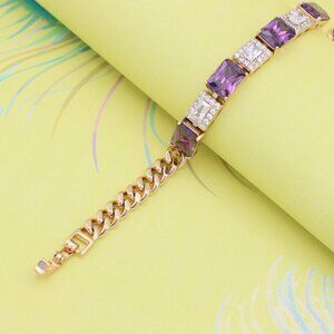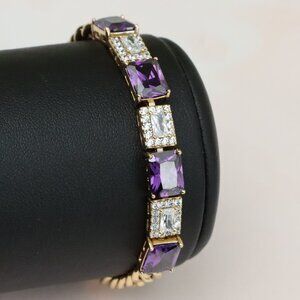 A luxurious bracelet featuring deep purple square-cut stones alternating with shimmering CZ accents.