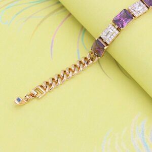 A luxurious bracelet featuring deep purple square-cut stones alternating with shimmering CZ accents.