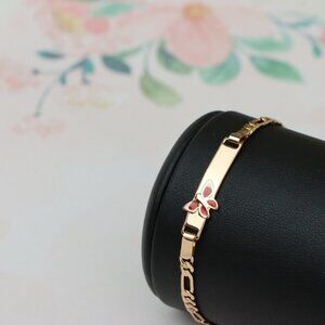 Delicate and charming, this rose gold bracelet features a vibrant butterfly accent, crafted with precision and elegance. Perfect for daily wear or special occasions.