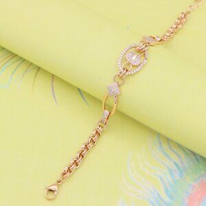 Elegant and radiant, this rose gold bracelet features a dazzling oval charm centerpiece accented with fine crystal detailing and textured chain links for a modern yet feminine touch.
