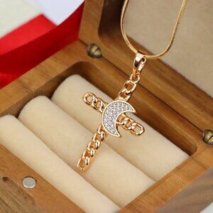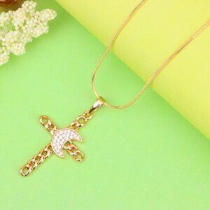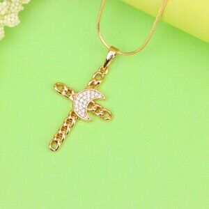 "Rose Gold Chain Cross Pendant with CZ Crescent Accent, XPPT1263