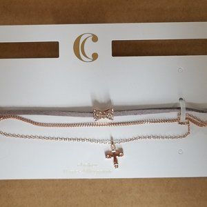 NWT (2) Charming Charlie Rose Gold chokers. One has small cross one has bow.