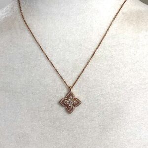 Rose Gold Sterling Silver Lucky Clover Flower Crystal Necklace and Matching Earrings