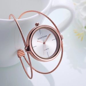 Rose Gold Color Doubler Ring Bangle Quartz Watch. Type Quartz Wristwatch