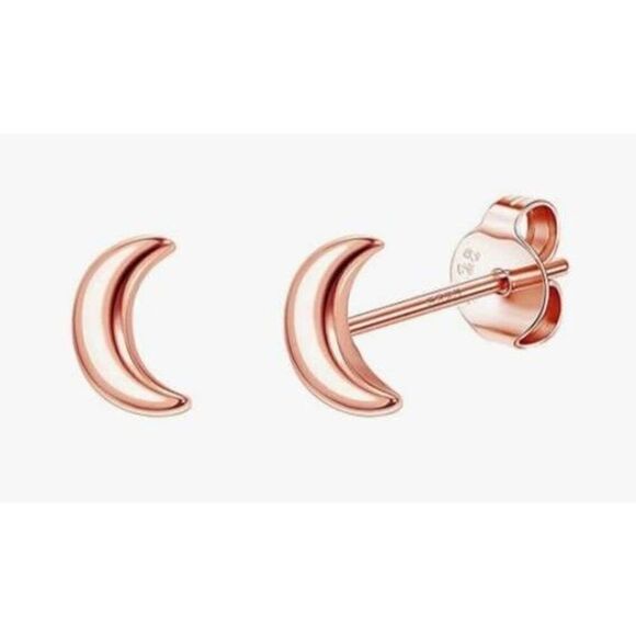 Rose Gold Colored Moon Stud Earrings 20G 925 Sterling Silver Hypoallergenic Post Backs New