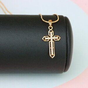 "Rose Gold Cross Pendant with CZ Stones and Pointed Edges Design, XPPT1845