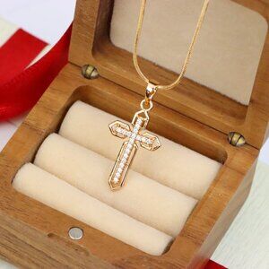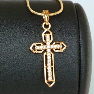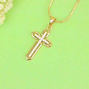 "Rose Gold Cross Pendant with CZ Stones and Pointed Edges Design, XPPT1845