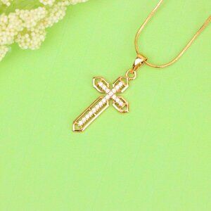 ✔️ Intricate cross design with pointed tips and CZ inlay