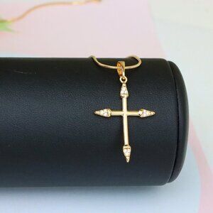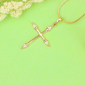 Stylish and refined rose gold pendant featuring a pointed cross design adorned with sparkling stones.