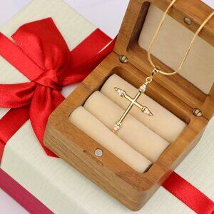 "Rose Gold Cross Pendant with Crystal Accents and Sleek Design, XPPT1863