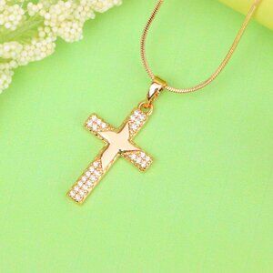 "Rose Gold Cross Pendant with Star Design and Sparkling Accents, XPPT1748 ✔️ Gold plated over premium quality brass for lasting shine ✔️ Cross-shaped design with a star detail in the center ✔️ Embellished with sparkling stones for an elegant touch ✔️ Perfect for everyday wear or meaningful gifting ✔️ Approx. size: 0.63 x 0.98 inches (1.6 x 2.5 cm) ✔️ Lightweight, durable, and skin-friendly finish"