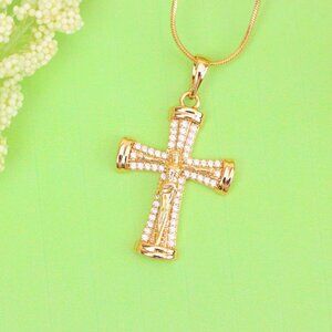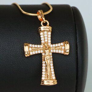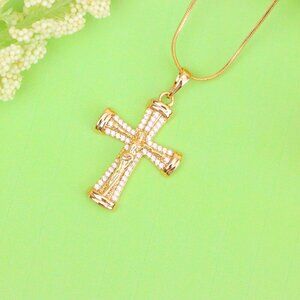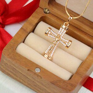 Radiates faith and elegance with detailed crucifix and shimmering stones.