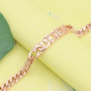 Elegant rose gold bracelet featuring a bold “Sudien” text centerpiece, crafted with premium gold-plated brass for a lasting finish. Ideal for everyday wear or gifting.