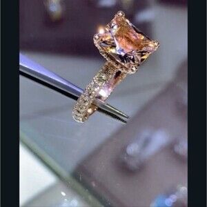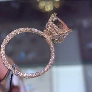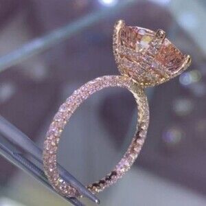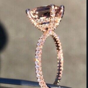 Rose Gold Diamond Under Halo Ring With Diamond Prongs Cushion Cut Morganite