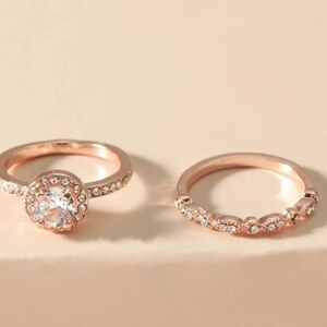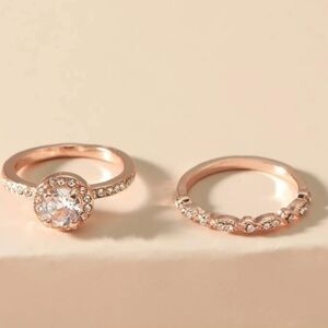 Rose Gold Diamond Zirconia Women's Set Ring Round Set