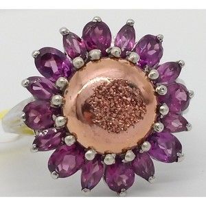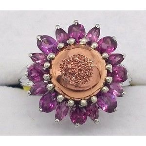 Rose Gold Druzy Pink Gemstone Ring Sterling Silver 925 Size 7 India Sparkly!