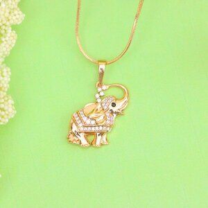 Rose Gold Elephant Pendant with Crystal Accents and Raised Trunk Detail,XPPT1619