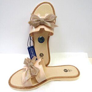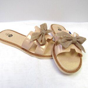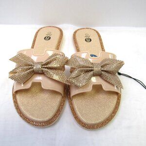 Rose Gold Embellished Bow Design Dressy Summer Sandals Slides Various Sizes NWT