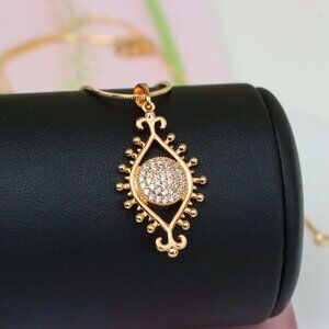 "Rose Gold Evil Eye Pendant with Crystal Center and Unique Design, XPPT1246