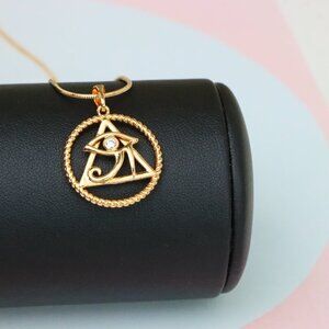 ✔️ Features Eye of Horus within a triangle and circle frame