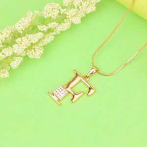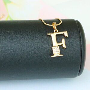 Elegant and minimal, this rose gold F letter pendant adds a personal and sparkling charm to any jewelry collection.