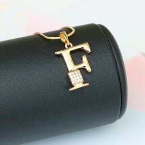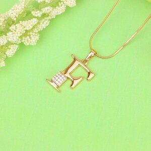 Elegant and minimal, this rose gold F letter pendant adds a personal and sparkling charm to any jewelry collection.