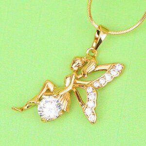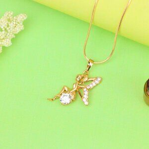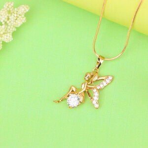 Delicately designed rose gold fairy pendant with sparkling wing details.