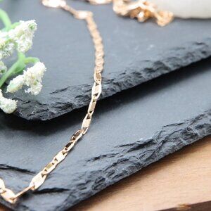 Stylish and modern Figaro-style rose gold necklace with adjustable extender, offering a polished look for any occasion.