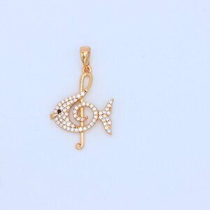 "Rose Gold Fish Pendant with Treble Clef Design and Crystal Accents, XPPT1479