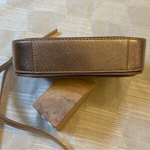 Kate Spade rose gold, long strap, front flap purse with interior front pocket and zipper pocket. Gorgeous rose gold color, in very good condition, a few imperfections in bottom back seem - all shown in images.