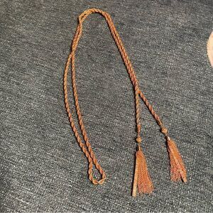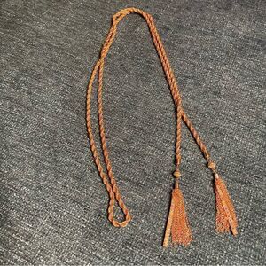 Used once, rose gold flapper chain necklace. It’s actually just a really long chain and you can drape it over however you want! Super fun.