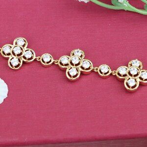 Elegant rose gold bracelet featuring a floral-inspired design with sparkling crystal clusters.