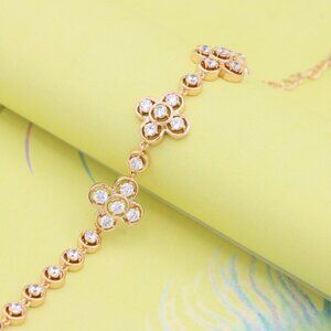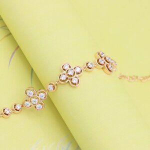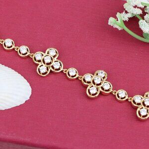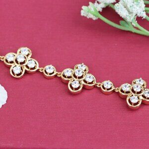 Elegant rose gold bracelet featuring a floral-inspired design with sparkling crystal clusters.