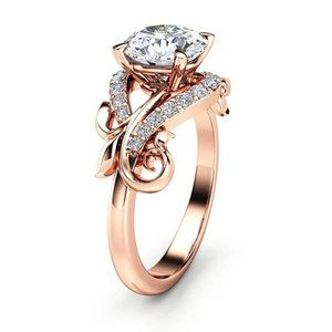 Rose Gold Flower Diamond Ring 925 Sterling Silver Titanium SZ:6-8 FAST SHIPPING!