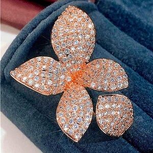 Adjustable Rose Gold Four Leaf Clover Zircon Ring
