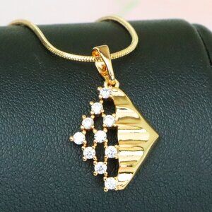"Rose Gold Geometric Pendant with Sparkling Stones, XPPT1213