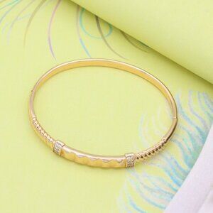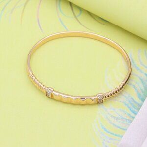 "Rose Gold Geometric Textured Bangle with Diamond Accents, XPBL0506