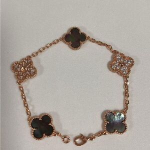 Rose Gold Gray Mother of Pearl 5 Motifs Vintage Alhambra Inspired Bracelet
