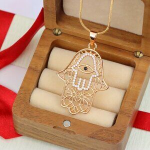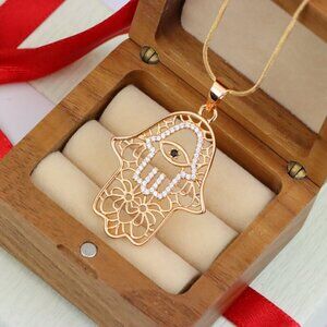 "Rose Gold Hamsa Hand Pendant with Crystal Eye Statement Charm, XPPT1585