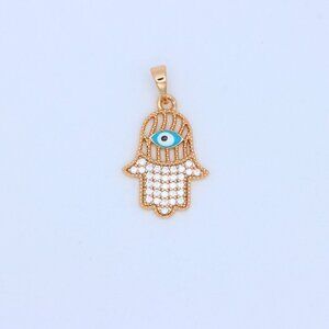 "Rose Gold Hamsa Hand Pendant with Evil Eye and Crystal Accents, XPPT1609
