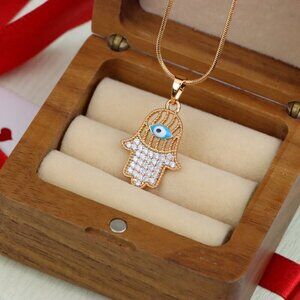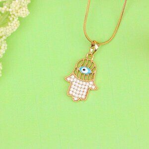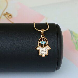 "Rose Gold Hamsa Hand Pendant with Evil Eye and Crystal Accents, XPPT1609