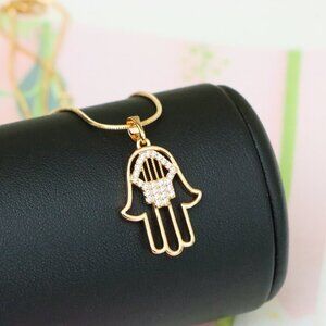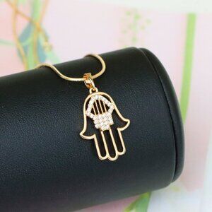 ✔️ Features iconic Hamsa hand design with embedded clear stones