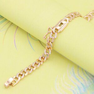 Elegant rose gold bracelet featuring a unique heart lock and key charm, designed with sparkling crystal-studded links to elevate your everyday and special occasion looks.